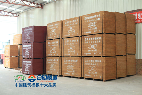 合明經營的建筑模板多為桉木建筑模板,其采用桉木芯板為內芯,松木面板為表面,經合明自制的模板專用膠水膠合而成。柔韌的松木表面加上夠硬的桉木芯,外柔內剛,有效保證模板承受重物的能力。合明桉木建筑模板以其一級的品質及公道的價格日銷萬張。